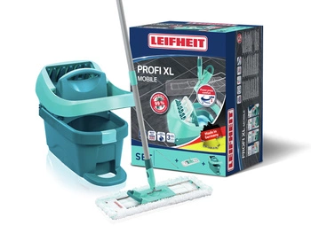 Profesjonalny mop Leifheit Profi: Twoje narzędzie do błyskawicznego sprzątania! Odkryj wygodę i efektywność z zestawem wiadra z kółkami! | 55096