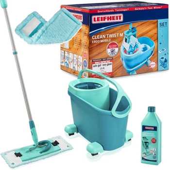 Mop obrotowy płaski z kółkami Leifheit Clean Twist Ergo M 52121 - Profesjonalna Skuteczność Czyszczenia w Zasięgu Twoich Rąk! | 52121/52124/41418