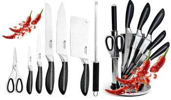 NOŻE STOJAK OBROTOWY NOŻYCZKI TASAK EDENBERG 8PCS STALOWE EB-904