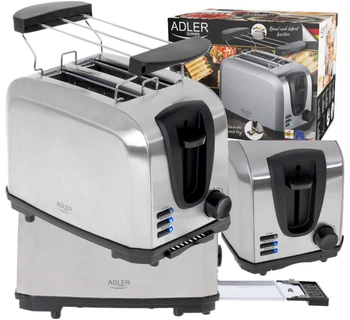 TOSTER 2 KROMKI ROZMRAŻANIE RUSZT DO BUŁECZEK ADLER AD3216