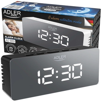 BUDZIK ZEGAR ALARM GODZINA TEMPERATURA ADLER AD1189b | Black