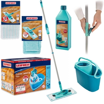 Mop obrotowy płaski Leifheit Clean Twist Ergo M 52120 - Profesjonalna Skuteczność Czyszczenia w Zasięgu Twoich Rąk! | 52120/52124/41415