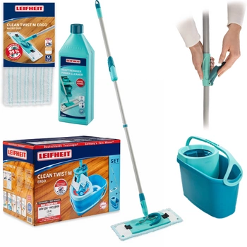 Mop obrotowy płaski Leifheit Clean Twist Ergo M 52120 - Profesjonalna Skuteczność Czyszczenia w Zasięgu Twoich Rąk! | 52120/52123/41415